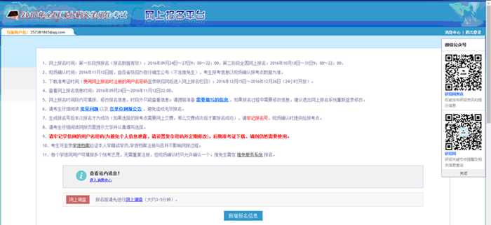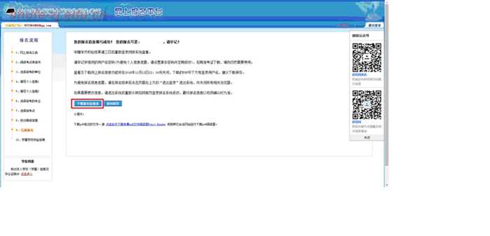 注:妥善保管报名信息表,待网上报名结束(10月31日后)要拿着该表去报考点缴纳报名费。